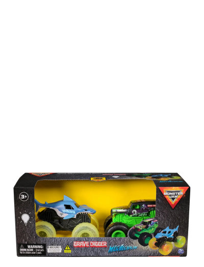 Dubbla Monster Jam-spänningen med det officiella 1:43 Scale Grave Digger och Megalodon Truck 2-Pack! Denna dynamiska duo för med sig all energi och action från Monster Jam direkt in i ditt hem, med realistiska detaljer, grafik och lysande hjul som gör varje lopp och stunt ännu häftigare. Det här 2-packet innehåller två av de mest ikoniska Monster Jam-lastbilarna: legendariska Grave Digger och vilda Megalodon. De lysande hjulen skiner klart när dina fordon rusar över golvet och adderar ett extra lager av spänning till din Monster Jam-upplevelse. Designade för hållbarhet och prestanda, är dessa lastbilar utrustade med BKT-gummidäck som ger bättre grepp, vilket gör det lätt att köra på alla underlag. Oavsett om du tävlar, kraschar eller gör häftiga tricks – dessa lastbilar klarar allt. Inga väntetider – 2-packet levereras med batterier till båda bilarna, så du kan sätta igång direkt. Ladda upp och låt Monster Jam-äventyret börja! Monster Jam-lastbilar står alltid högt på barns önskelistor. Dessa leksaker passar perfekt för pojkar och flickor från 3 år och uppåt, vilket gör dem till utmärkta presenter för födelsedagar, högtider och alla speciella tillfällen. Se hur barnets fantasi sätter fart med sina egna Monster Jam-replikor, som erbjuder timmar av kul och spänning. Missa inte chansen att ta med det ultimata Monster Jam-äventyret hem!