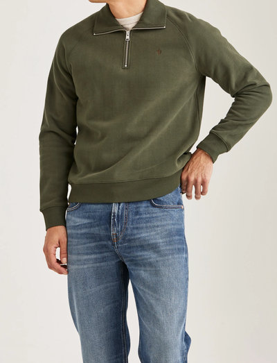 Denna bekväma sweatshirt definieras av en halv dragkedja och hög hals. Designen fulländas med ribbade kanter och en diskret logotypdetalj på bröstet.