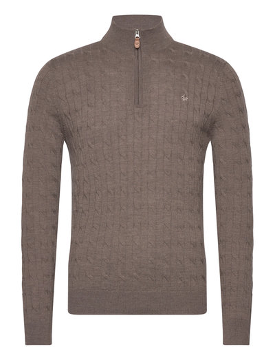 Denna halvzip-tröja har en kabelstickad design som erbjuder både värme och stil. Dragkedjan i halsen ger justerbar komfort, medan den subtila logotypen ger en touch av elegans. Perfekt för lager-på-lager eller att bära som den är.