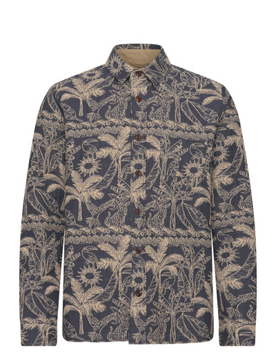Denna overshirt har en knappslå framtill och kombinerar stil med praktisk användbarhet. Det genomgående trycket ger en distinkt touch, vilket gör den till ett utmärkande plagg som kan användas lager på lager eller separat.