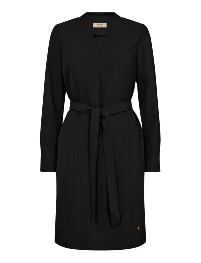 Med en smickrande V-ringning och ett knytband i midjan erbjuder denna klänning en bekväm och stilren passform. De långa ärmarna och den knälånga modellen gör den till ett mångsidigt val för olika tillfällen.