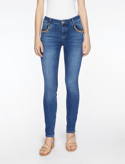 Dessa jeans är tillverkade med signaturdekorationer på framfickorna och ger en stilfull twist till en klassisk design. Den avsmalnande, normala passformen och den medelhöga midjan skapar en smickrande silhuett, vilket gör dem till ett mångsidigt tillskott till din garderob. Bär dem med en oversized skjorta för en avslappnad look, eller klä upp dem med en statement-t-shirt och en overshirt.