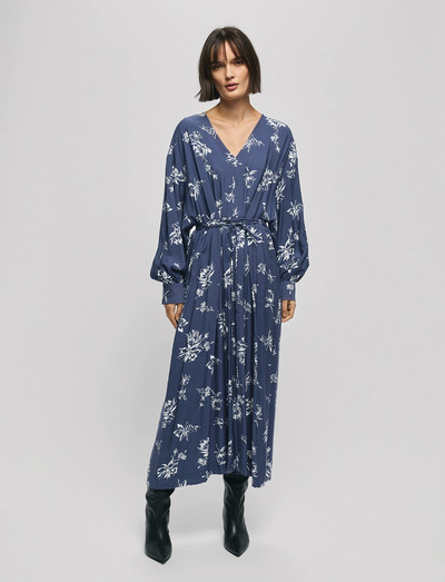 Med ett delikat blommönster erbjuder denna klänning en touch av elegans för alla tillfällen. De långa ärmarna och den böljande silhuetten skapar en bekväm och stilfull look, perfekt för övergången mellan säsongerna. En knytdetalj i midjan ger definition och fulländar den smickrande designen.