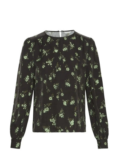 Delikata blommönster pryder denna långärmade topp och skapar en raffinerad och elegant look. Den fallande silhuetten och det lätta tyget gör den till ett bekvämt val för hela dagen. Kombinera den med skräddarsydda byxor för en sofistikerad ensemble, eller klä ner den med jeans för en mer avslappnad stil.