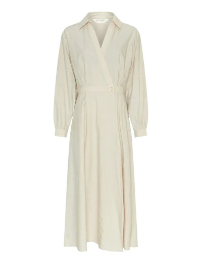 Denna skjortklänning har en smickrande silhuett med krage och omlottdesign framtill. De långa ärmarna och midilängden gör den till ett mångsidigt val för olika tillfällen.
