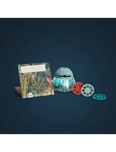 USB-rechargeable projector with 24 images to project, to spur the imagination and inspire stories within 3 themes: sky, sea and land animals. A built-in nightlight illuminates a magnificent landscape and switches off automatically after 15 minutes. Cleaning: Wipe with a soft, damp cloth Batteries: Build-in lithium battery Material: ABS Product: 10,5 x 11,5 x 11,5 cm Age: 4-7 yrs