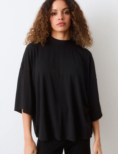 Denna kortärmade topp har en strömlinjeformad silhuett och en modern mock neck. Mjuk och stretchig jersey säkerställer en bekväm och smickrande passform, vilket gör den idealisk för både lager-på-lager och att bäras separat.