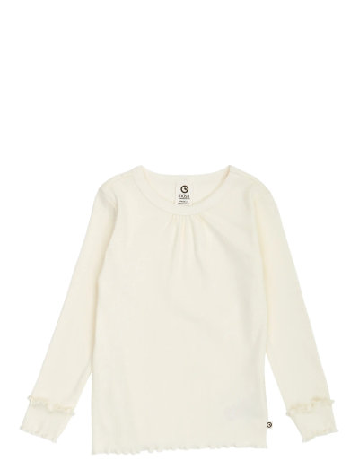 Denna långärmade tröja är tillverkad i mjuk och stretchig ribbad bomull och har fina volangdetaljer vid ärmsluten, vilket ger en söt touch till den enkla designen. 2x2-ribbstickningen innehåller elastan för en bekväm passform. GOTS Organic-certifierad, vilket säkerställer att bomullen är ekologiskt odlad och att strikta miljömässiga och sociala standarder uppfylls under hela produktionsprocessen.