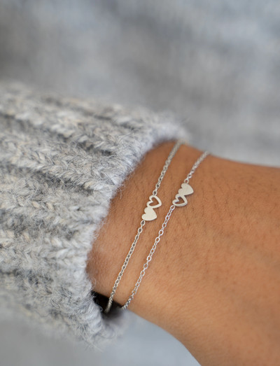 Delikata kedjor möter hjärtlig design i detta set med två armband, var och en prydd med ett par charmiga hjärtberlocker. Perfekt för att dela med en älskad, dessa armband erbjuder ett subtilt men meningsfullt sätt att uttrycka samhörighet och tillgivenhet.