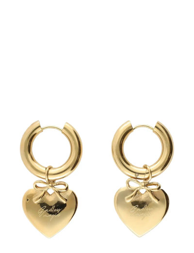 Dessa creoler har ett charmigt hjärthänge. Hjärtdetaljen inkluderar en delikat rosett, vilket ger en söt touch till den övergripande designen. Perfekt för att addera en lekfull men elegant touch till vilken outfit som helst.