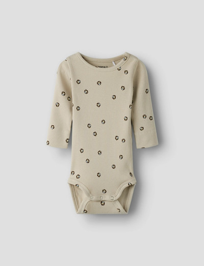 Mjuk ribbstickning och ett allover-tryck gör denna body till ett charmigt tillskott i varje barns basgarderob. Designad för användning året runt, den har långa ärmar och praktiska tryckknappar i grenen och på axeln för enkel påklädning.