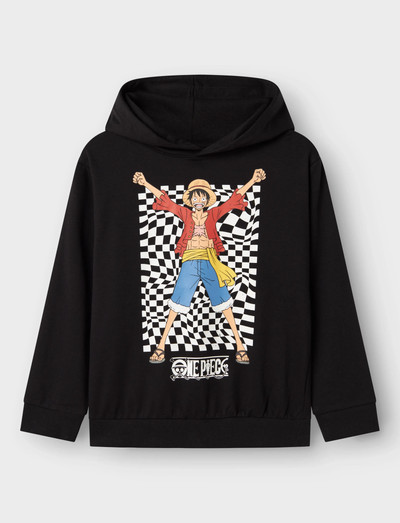 Denna hoodie har ett djärvt One Piece-tryck och ger en cool och avslappnad känsla till varje outfit. Det borstade sweatshirttyget ger en mjuk och bekväm känsla, medan de ribbade muddarna säkerställer en åtsittande passform. Perfekt för fans av serien och ett idealiskt tillskott till varje garderob.