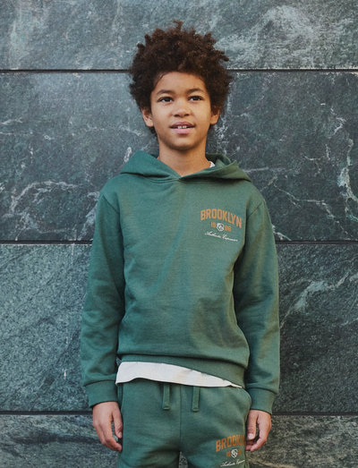 Denna borstade sweatshirt har en mjuk insida och erbjuder en bekväm känsla. Den är designad med långa ärmar och en huvtröja, perfekt för att skapa en avslappnad, trendig look. Den normala passformen säkerställer en snygg silhuett, medan broderiet och gummitrycket ger extra detaljer.