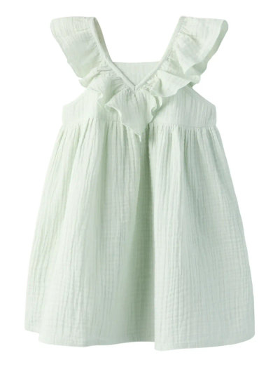 Denna klänning är tillverkad i lätt muslinväv och är ett härligt tillskott till varje barns garderob, perfekt för alla årstider eller tillfällen. Den texturerade, mjuka ytan och cap-ärmarna bidrar till det strukturerade utseendet, medan O-halsen och den normala passformen säkerställer komfort.