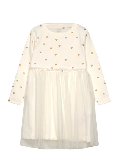 Denna långärmade klänning är perfekt för alla tillfällen och kommer att fräscha upp varje barns garderob. Det mjuka jerseytyget säkerställer en bekväm känsla och obegränsad rörelse. Den har en klassisk O-ringning, en normal passform och ett glittrigt glittertryck. Tyll-detaljerna ger en extra touch av elegans.