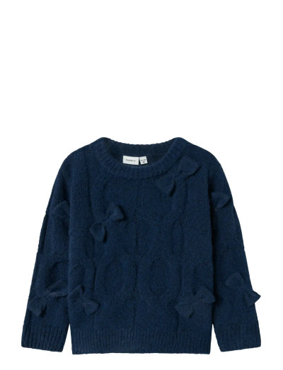Denna stickade tröja har en fascinerande textur och söta rosett-detaljer som ger en trendig touch till varje outfit. Den normala passformen och ribbade muddarna säkerställer en bekväm känsla, medan de långa ärmarna ger extra värme.