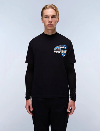 Denna kortärmade t-shirt hyllar friluftslivet med retroinspirerade bergsmotiv fram och bak. Den är tillverkad i 100 % bomull för en mjuk och bekväm känsla.
