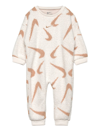 Denna mjuka overall är täckt av ett upprepande logomönster och är ett mysigt val. Den långärmade designen säkerställer värme, medan de integrerade fötterna håller små tår varma.