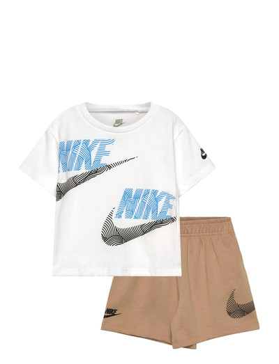 Detta set med shorts har en klassisk t-shirt och matchande shorts, perfekt för vardagsbruk. Toppen har ett djärvt grafiskt tryck, medan shortsen har en elastisk midja för en bekväm passform.