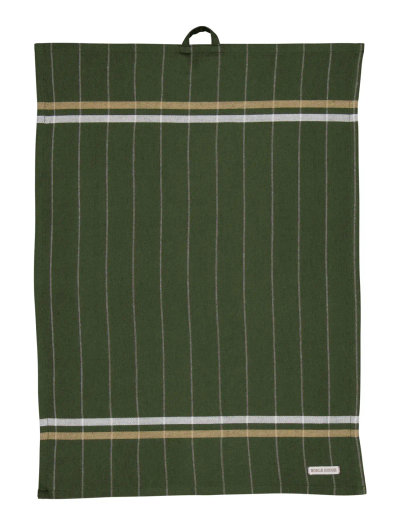 Klassisk och tidlös kökshandduk men samtidigt väldigt modern med sina dekorativa kritstrecksränder i härliga höstfärger, kökshandduken är garnfärgad och gjord i 100% återvunnen bomull/polyester. Handduken har klassisk upphängningsögla högst upp i samma tyg.