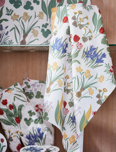 Vårens vackraste blomsteräng direkt tryckt på din kökshandduk och man blir bara glad av att se den, ett litet smycke i köket. Handduken har fin absorbstionsförmåga och torkar snabbt.