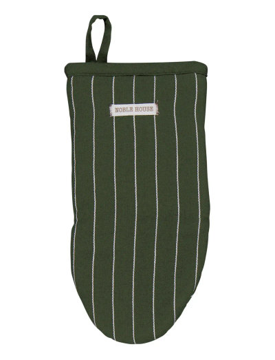 Höstens ljuvligaste grillvante är här, med sin dekorativt murrig färg och pigga och moderna kritstrecksränder, dessutom med högt ett skaft för att skydda dig från ugnsvärmen. Grillvanten är gjord i 100% återvunnen bomull/polyester.