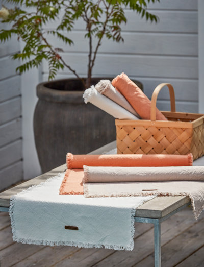 Denna rustika och vackra bomulls löpare med sin fina franskant i ändarn är behandlad så att den skall vara lite "skrynklig" för att ge ett rustikt seende, den är enkel att dekorera med och ger ett hemtrevligt intryck.