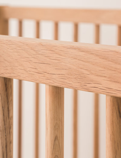 The Latitude crib in solid oak grows with your child from birth. It's a little design treasure from the Nobodinoz furniture range. This magnificent crib is designed for lovers of design and singular pieces. Combining elegance and functionality at every stage, the Latitude range is inspired by Japanese minimalism, an aesthetic reflected in the careful design of its beds. The tatami-like base and rounded, flowing lines create a restful environment full of serenity and style. When baby starts to walk, remove the central bars to allow him to get out of bed easily. When switching rooms, transform your crib into a magnificent junior bed (kit not included): the cotton-corded bedhead adds an incomparable design touch to your children's bedroom. The Latitude collection is the result of a collaboration with French designer Marc Venot. We chose solid oak as our top-of-the-range wood to guarantee elegance, solidity and durability. Dimensions: Crib position: 82 x 152 x 85 cm (total height) - Junior bed position: 82 x 152 x 51 cm Solid oak wood crib Natural: ultra-matte, non-toxic, water-based varnish High end: each bed is meticulously crafted and inspected, combining traditional techniques with advanced technologies to guarantee exceptional quality and finish. Adaptability: Two mattress positions: high and low The central bars are removable to allow baby to get out easily as he begins to walk. Evolving: Thanks to the magnificent evolving kit (not included), this bed can easily be transformed into a junior bed, adapted to your child's growth. Japanese style: Tatami-shaped base and rounded legs for a peaceful, uncluttered bedroom. Standard mattress: 70 x 140 x 15 cm (maximum mattress thickness) (not included) Perforated plywood base for optimal ventilation Cleaning: Regular cleaning is not necessary - gently wipe with a damp cloth - wash the cording with a dab of neutral soap.