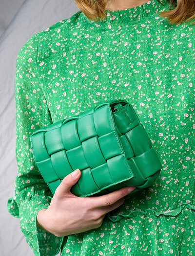 Den här snygga crossbody-väskan är tillverkad av konstläder och har en unik vävd design. Den har en justerbar axelrem och ett rymligt interiör. Väskan är perfekt för vardagsbruk och kan stylas med en mängd olika outfits.