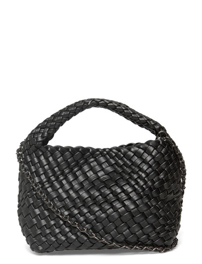 Denna axelväska definieras av vävd textur och en modern form. Det mjuka materialet i korgväv skapar en strukturerad silhuett, som kompletteras av en lång, flätad axelrem för bekväm användning. Den inåtgående öppningen upptill ger en skulptural detalj samtidigt som den håller dina saker säkra. En mångsidig väska som lyfter både avslappnade och mer uppklädda outfits.