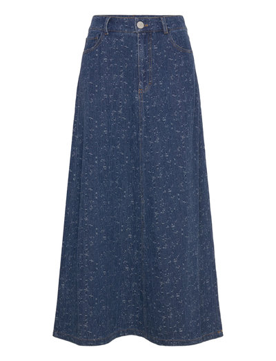 Denna långa denimkjol är tillverkad i en klassisk A-linje silhuett och har ett tidlöst uttryck. Den fulla längden och de subtila detaljerna gör den till ett mångsidigt tillskott till varje garderob, som enkelt kan stylas för både vardags- och kvällsbruk.