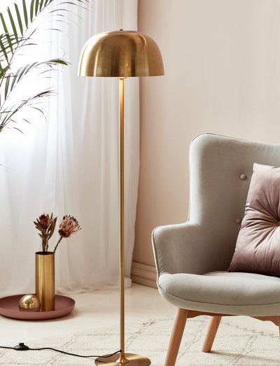 Golvlampan Cera ger ett trevligt nedåtriktat ljus och kan exempelvis stå bakom soffan eller intill din favoritfåtölj.