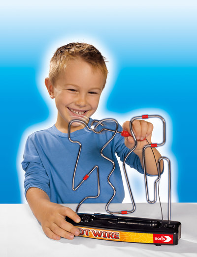Observera att tråden är varm! ! Med detta skicklighetsspel från Noris måste du vara stadig på handen och försöka köra en stav längs ledningen utan att röra vid den. När ledningen berörs hörs en signal och spelet måste börja om. 22 x 23 cm. Batterier ingår ej (2 x AA). Hot Wire från Noris passar barn från 3 år.