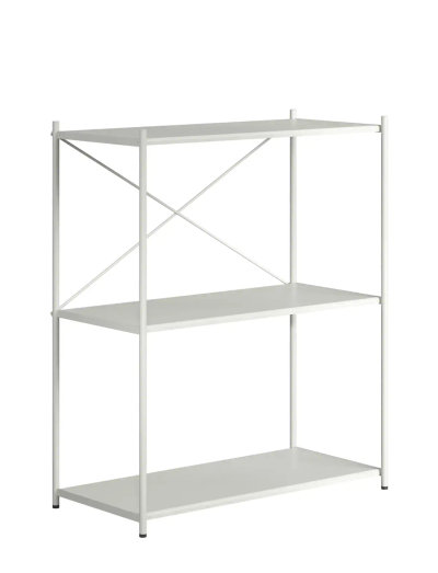 systemet består av moduler i två olika höjder med antingen 3 eller 5 hyllplan. modulerna kan kombineras för att skapa en skräddarsydd konfiguration efter individuella önskemål.
