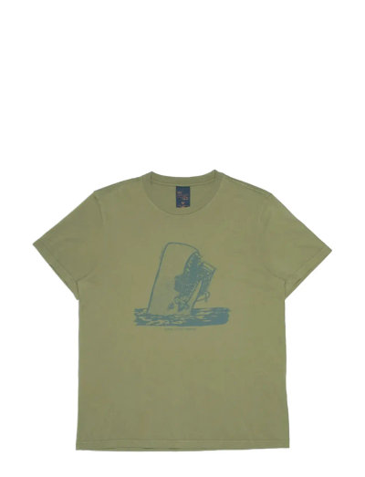 Denna t-shirt med rund hals är tillverkad av ekologisk bomull och har ett tryck på bröstet. Det öppna spunnet garnet ger en öppen stickning med en oregelbunden karaktär, en torr känsla och lite hårighet. Den lätta vintage-looken kommer från plaggets färgning och dessutom en fade-out-tvätt. Detta ger det slitna utseendet som vi tycker passar så bra till denim.