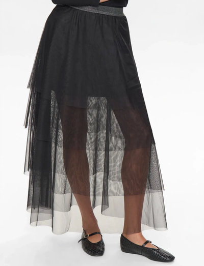 Den här kjolen har en design med flera lager som ger en lekfull elegans till vilken outfit som helst. Det lätta materialet säkerställer en bekväm passform, medan den böljande silhuetten skapar en smickrande form.