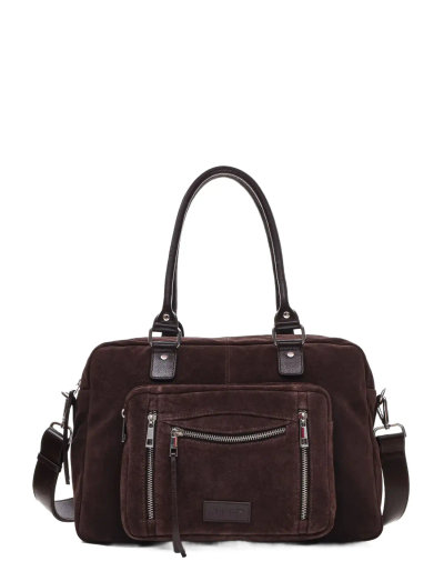 Denna väska är tillverkad i mjuk mocka och erbjuder en tidlös look och utmärkt organisation. Flera fickor ger plats för det viktigaste, inklusive en bärbar dator, vilket gör den till ett praktiskt val för vardagsbruk.