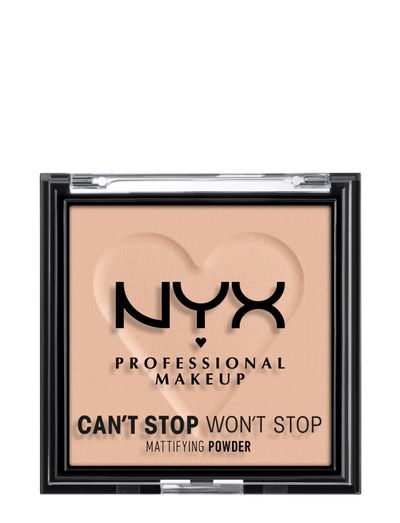 Can't stop won't stop mattifying powder från nyx professional makeup ger omedelbart resultat och minimerar glans och oljig hud. lätt vegansk formula* för en slät och matt finish på huden som varken känns torr, klumpar sig eller ser askig ut. diskret och uppbyggbar nyans som smälter in med huden och ger en jämn och slät finish utan att fastna i fina linjer. det mattgörande pudret gör så att din foundation håller längre på huden och så att din makeup sitter som den ska. minimerar glans hela dagen med en ultramatt finish som du inte behöver bättra på under dagens gång.