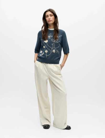 Den här Object-tröjan är ett snyggt och bekvämt val för alla tillfällen. Den har en klassisk rund hals och korta ärmar, vilket gör den perfekt för lager på lager. Tröjan är prydd med delikat blomsterbroderi, vilket ger en touch av elegans till din look.