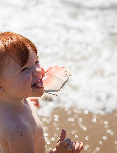 H2Origami Crab är en tuggbar leksak av naturgummi avsedd för tandvård, badtid och sensorisk lek. Den är utformad för att lugna spädbarns tandkött medan de transporterar små till ett marint universum under badtiden.