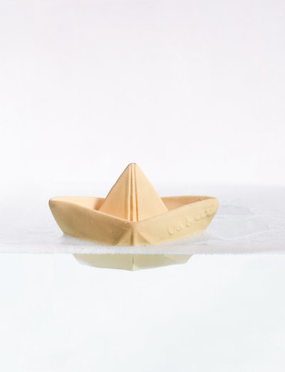 Origami Boat är redo att segla med små under badtiden! Dess design är inspirerad av origami-essensen, vilket gör den perfekt som en tandring, badleksak, sensorisk lekleksak och också som ett dekorativt föremål. Den är gjord i ett stycke utan hål som gör den 100% bakteriefri. Origami-båten hjälper små att lugna tandköttet medan du stänker i badet.