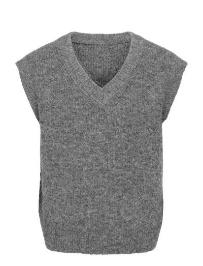 Mjuka stickade stilar är idealiska för kallare väder och ger komfort och en tidlös look. Den avslappnade västen har en V-ringning och en ärmlös design. Strukturstickningen ger ett stilfullt och rent utseende.