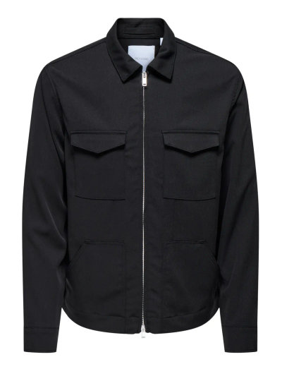 Denna overshirt har en full dragkedja, vilket ger mångsidiga stylingalternativ. Designen har bröstfickor med lock och ytterligare nedre fickor, vilket kombinerar funktionalitet med en ren estetik.