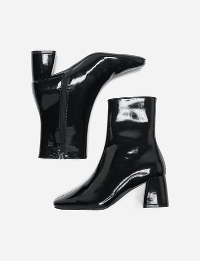 Förvandla din look omedelbart med dessa eleganta, höga klackstövlar. Tillverkade av syntetiskt läder med en subtil glans, erbjuder de en textur som påminner om äkta läder. Designade med en fyrkantig tå och en robust blockklack, har dessa stövlar en praktisk dragkedja och ett bekvämt polyesterfoder. Den slitstarka TPR-yttersulan säkerställer långvarig användning, medan sömdetaljerna ger en touch av elegans.