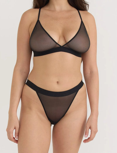 Den här braletten är gjord av ett mjukt och andningsbart mesh-tyg. Den har justerbara band och en triangelkoppdesign. Braletten är perfekt för vardagsbruk och ger en bekväm och stödjande passform.