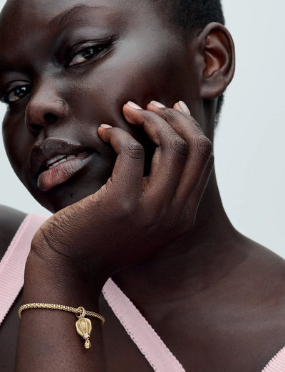 Glittrande Murano-glas omgivet av pärlförsedda, 14k guldpläterade rep definierar denna berlock. Klara cubic zirconia-stenar pryder fästet och basen, medan en liten gondol fulländar designen. Bär denna luftballongsberlock som en påminnelse om att jaga dina drömmar, eller ge bort den till någon som är redo för äventyr.