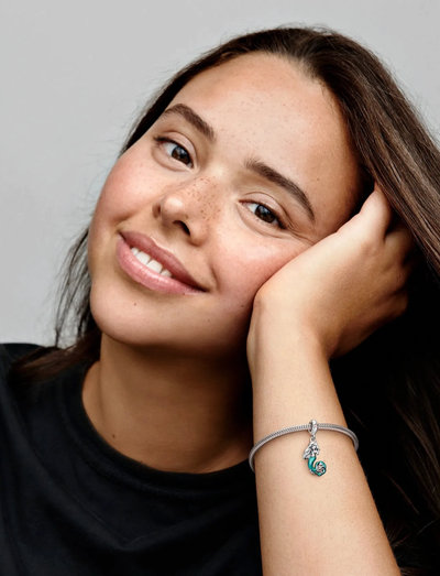 Inspirerad av live-action-filmen fångar denna dinglande berlock i sterlingsilver essensen av Ariel. Designen har graverade detaljer som ger Ariels ansikte och hår liv, medan hennes stjärt skimrar med teal- och cerisefärgad emalj. En klar cubic zirconia sitter ovanpå och påminner om solljus på havet.