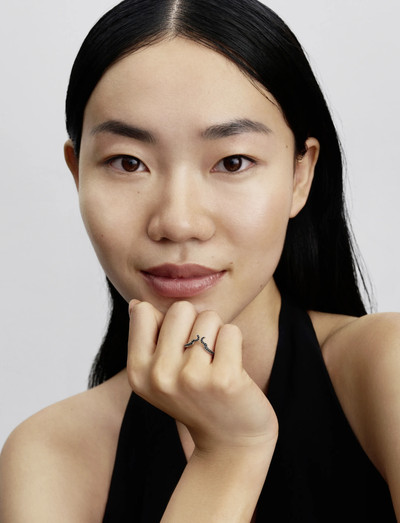 Denna ring är tillverkad i sterlingsilver och har en fängslande design inspirerad av en klassisk skurk. Den öppna silhuetten är utsmyckad med mörka kristaller, vilket ger en edgy elegans till varje look.