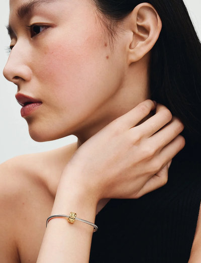 En rad av knutna hjärtan pryder detta clip-berlock och ger ditt armband en innerlig touch. Designen kombinerar det ikoniska hjärtat med den klassiska kärleksknuten, vilket ger din samling extra känslomässig dragningskraft. Observera att detta clip-berlock inte har något silikongrepp, så den glider om den inte är fäst på gängor.