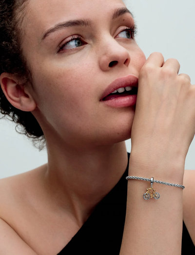 Denna tvåfärgade cykelberlock framkallar en känsla av äventyr och är en påminnelse om glädjen i att utforska. Den detaljerade designen har en sadel, styre, pedaler och till och med snurrande hjul. Lägg till detta smycke till din samling som en symbol för frihet, eller ge bort det till någon som älskar att utforska.